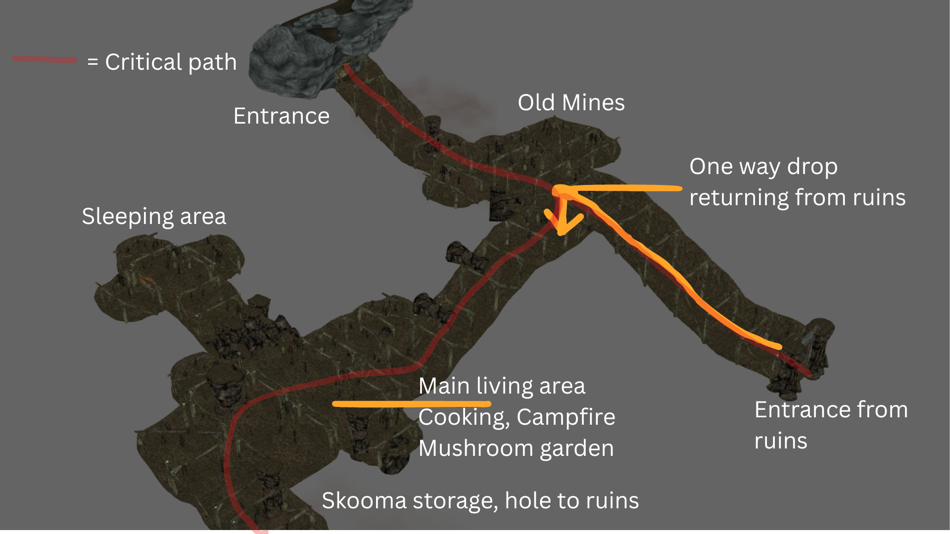 The first iteration of the mine was a simple blockout with a few key goals: